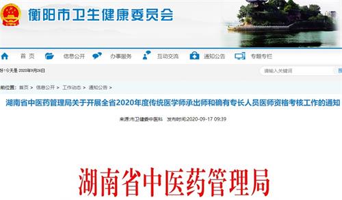 衡陽市轉(zhuǎn)發(fā)湖南省關(guān)于2020年度傳統(tǒng)醫(yī)學(xué)師承出師和確有專長人員醫(yī)師資格考核報名工作的公告,2020年衡陽市傳統(tǒng)醫(yī)學(xué)師承出師和確有專長考試報名工作開啟,醫(yī)學(xué)教育網(wǎng)編輯為您整理衡陽市2020年傳統(tǒng)醫(yī)學(xué)師承出師和確有專長人員醫(yī)師資格考核報名工作相關(guān)問題如下。