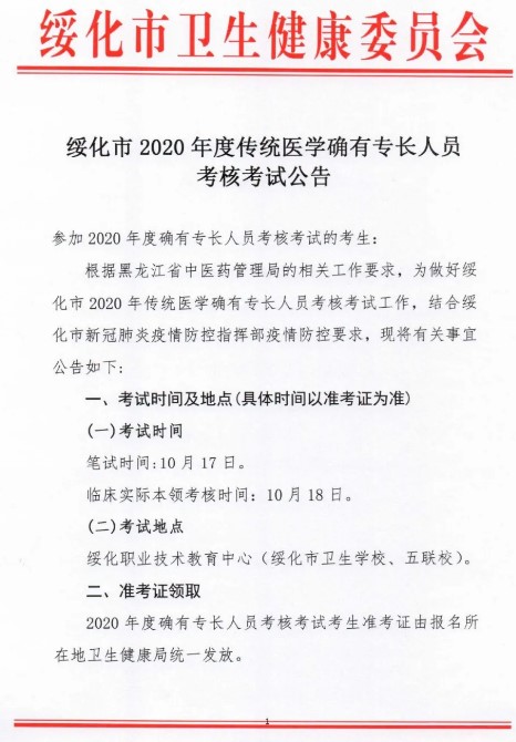 綏化市2020年度傳統(tǒng)醫(yī)學(xué)確有專長人員考核考試公告已發(fā)布,醫(yī)學(xué)教育網(wǎng)編輯為您整理相關(guān)通知內(nèi)容如下。