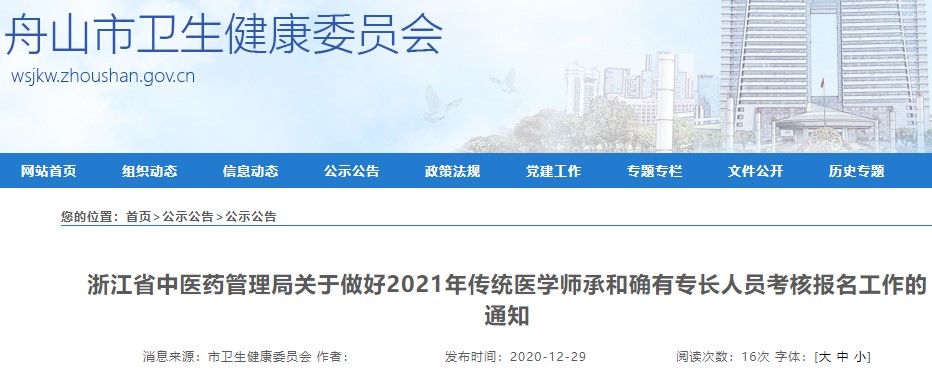 舟山市衛(wèi)健委轉(zhuǎn)發(fā)2021年傳統(tǒng)醫(yī)學(xué)師承和確有專長人員考核報名,醫(yī)學(xué)教育網(wǎng)編輯為您整理相關(guān)通知內(nèi)容如下: