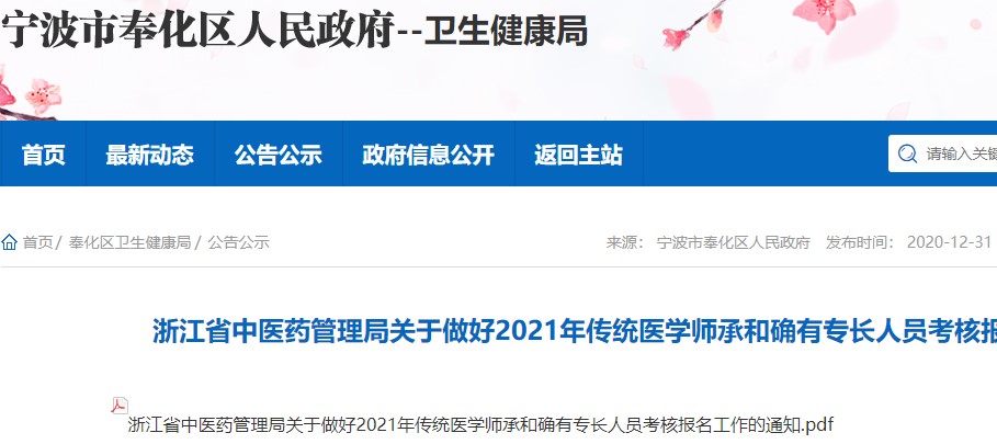 浙江省中醫(yī)藥管理局關(guān)于做好2021年傳統(tǒng)醫(yī)學(xué)師承和確有專長(zhǎng)人員考核報(bào)名工作的通知