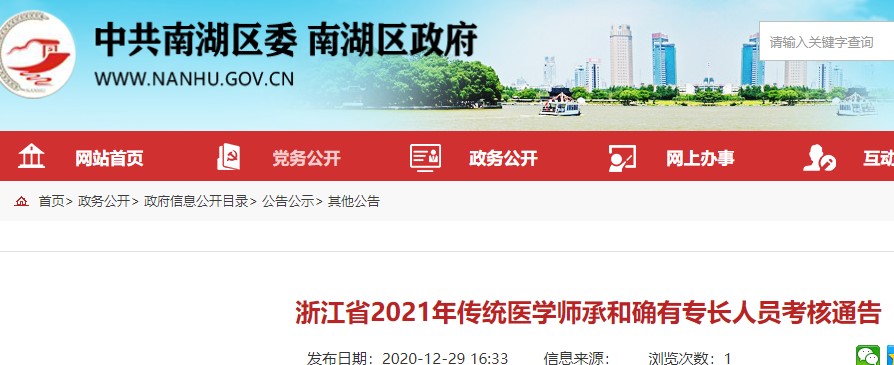 嘉興市南湖區(qū)2021年傳統(tǒng)醫(yī)學(xué)師承和確有專長(zhǎng)考核報(bào)名及審核事宜已發(fā)布,報(bào)名工作定于 2021年1月18日9:00-2月8日17:00進(jìn)行?,F(xiàn)場(chǎng)審核確認(rèn)時(shí)間:2021年1月18日—1月29日(工作日),傳統(tǒng)醫(yī)學(xué)師承申請(qǐng)人持《傳統(tǒng)醫(yī)學(xué)師承出師考核申請(qǐng)表》到師承指導(dǎo)老師主要執(zhí)業(yè)機(jī)構(gòu)在南湖區(qū)的,前往南湖區(qū)衛(wèi)生健康局醫(yī)政醫(yī)管科(中醫(yī)管理科)進(jìn)行報(bào)名資格初審和報(bào)名信息確認(rèn);