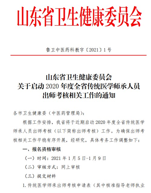 山東省衛(wèi)生健康委員會關(guān)于啟動(dòng)2020年度全省傳統(tǒng)醫(yī)學(xué)師承人員出師考核相關(guān)工作的通知