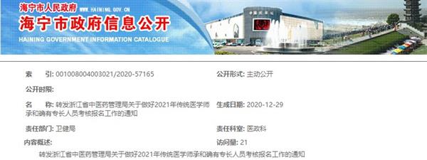 附件:浙江省中醫(yī)藥管理局關(guān)于做好2021年傳統(tǒng)醫(yī)學(xué)師承和確有專長人員考核報(bào)名工作的通知