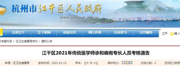 根據(jù)《傳統(tǒng)醫(yī)學(xué)師承和確有專長人員醫(yī)師資格考核考試辦法》(原衛(wèi)生部令第52號)、《關(guān)于印發(fā)浙江省以師承方式學(xué)習(xí)傳統(tǒng)醫(yī)學(xué)管理等細(xì)則的通知》(浙衛(wèi)發(fā)〔2008〕117號)以及《浙江省中醫(yī)藥管理局關(guān)于做好2021年傳統(tǒng)醫(yī)學(xué)師承和確有專長人員考核報名工作的通知》的有關(guān)規(guī)定,現(xiàn)將杭州市江干區(qū)2021年傳統(tǒng)醫(yī)學(xué)師承和確有專長人員考核有關(guān)事項通告如下: