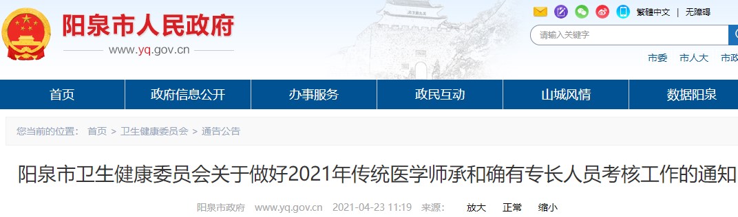 陽泉市2021年傳統(tǒng)醫(yī)學(xué)師承和確有專長人員考核通告