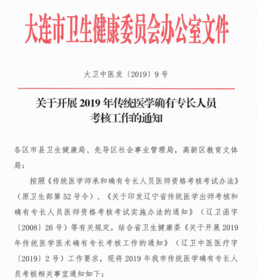 2019年大連市傳統(tǒng)醫(yī)學(xué)醫(yī)術(shù)確有專長考核報(bào)名的通知,具體內(nèi)容醫(yī)學(xué)教育網(wǎng)整理如下: