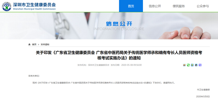 深圳衛(wèi)健委轉發(fā)《廣東省關于傳統(tǒng)醫(yī)學師承和確有專長人員醫(yī)師資格考核考試實施辦法》的通知,具體通知內容醫(yī)學教育網整理如下: