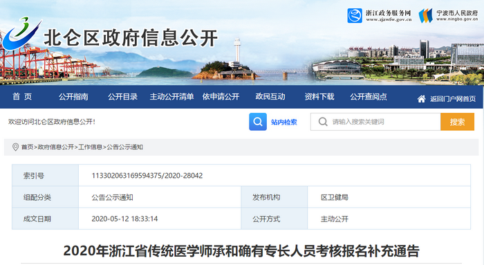 浙江寧波北侖區(qū)2020年師承和確有專長考核工作的通知