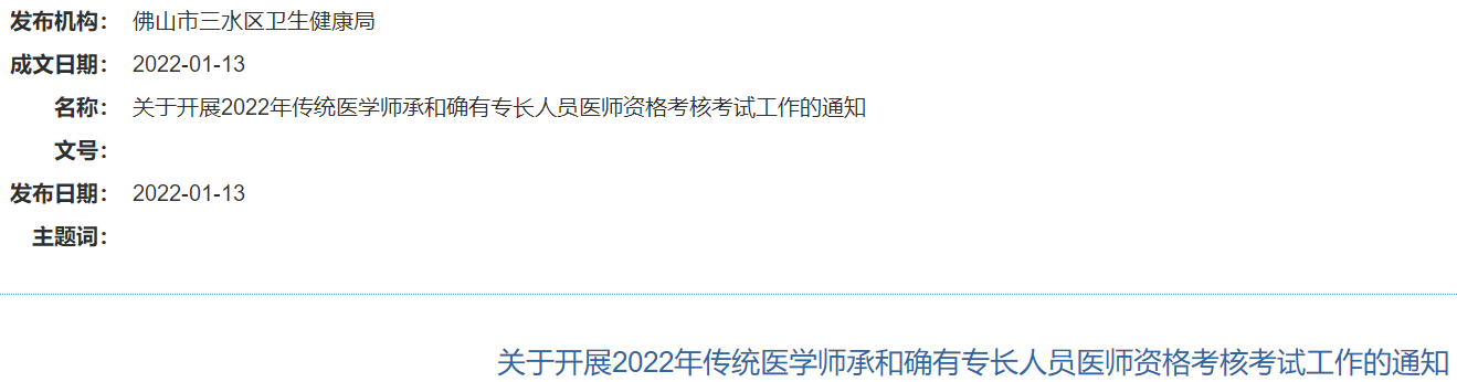 為幫助考生報(bào)考,醫(yī)學(xué)教育網(wǎng)編輯為您整理了關(guān)于佛山市三水區(qū)開展2022年傳統(tǒng)醫(yī)學(xué)師承和確有專長人員醫(yī)師資格考核考試工作的通知相關(guān)內(nèi)容如下: