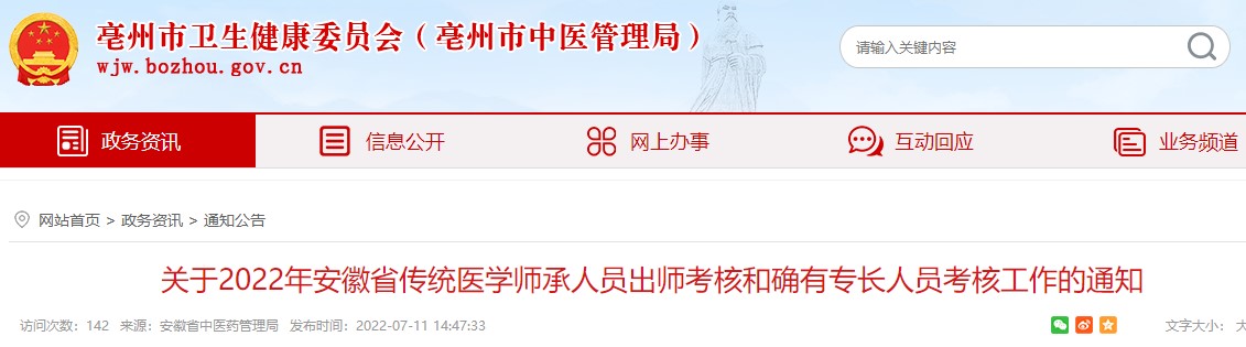 根據(jù)《傳統(tǒng)醫(yī)學(xué)師承和確有專長人員醫(yī)師資格考核考試辦法》(原衛(wèi)生部令第52號(hào))、《安徽省傳統(tǒng)醫(yī)學(xué)師承和確有專長人員醫(yī)師資格考核考試工作方案》(衛(wèi)中醫(yī)藥秘〔2011〕68號(hào))等相關(guān)文件要求,現(xiàn)就2022年安徽省傳統(tǒng)醫(yī)學(xué)師承人員出師考核和確有專長人員考核工作具體事宜通知如下: