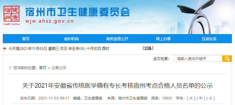 附件:2021年安徽省傳統(tǒng)醫(yī)學(xué)確有專長考核宿州考點合格人員名單(進入宿州市衛(wèi)健委查看)