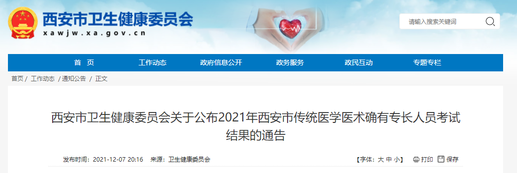 西安市衛(wèi)生健康委員會關于公布2021年西安市傳統(tǒng)醫(yī)學醫(yī)術確有專長人員考試結果的通告