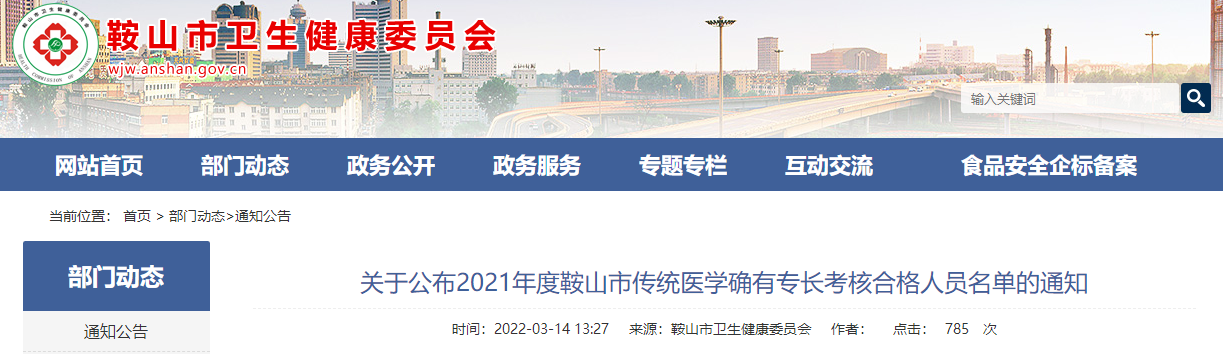 關于公布2021年度鞍山市傳統(tǒng)醫(yī)學確有專長考核合格人員名單的通知