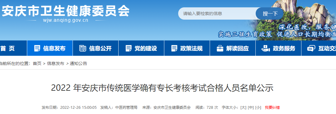 2022年安慶市傳統(tǒng)醫(yī)學(xué)確有專長(zhǎng)考核考試合格名單表:https://wjw.anqing.gov.cn/xxfb/tzgg/2002471641.html