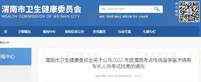渭南市衛(wèi)生健康委員會(huì)關(guān)于公布2022年度渭南考點(diǎn)傳統(tǒng)醫(yī)學(xué)醫(yī)術(shù)確有專長(zhǎng)人員考試結(jié)果的通告