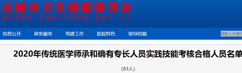 運城2020年傳統(tǒng)醫(yī)學(xué)師承和確有專長實踐技能考核合格人員名單已公布,醫(yī)學(xué)教育網(wǎng)編輯為您整理相關(guān)通知內(nèi)容如下: