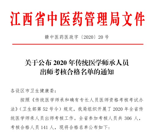江西省2020年傳統(tǒng)醫(yī)學師承人員出師考核合格名單公布了,醫(yī)學教育網(wǎng)編輯為您整理如下。