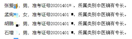 根據(jù)《傳統(tǒng)醫(yī)學(xué)師承和確有專(zhuān)長(zhǎng)人員醫(yī)師資格考核考試辦法》(衛(wèi)生部第52號(hào)令)和《山西省衛(wèi)生健康委辦公室關(guān)于做好2020年傳統(tǒng)醫(yī)學(xué)師承和確有專(zhuān)長(zhǎng)人員考核工作的通知》(晉衛(wèi)辦中醫(yī)藥函〔2020〕26號(hào))等文件要求,經(jīng)實(shí)踐技能考核和筆試,共有4名人員考核合格,現(xiàn)將考核合格人員名單予以公示,公示期為2020年12月28日—2021年1月3日。如有異議者,可在公示期間向陽(yáng)泉市衛(wèi)生健康委員會(huì)中醫(yī)藥和藥政科反饋。