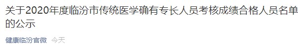 關于2020年度臨汾市傳統(tǒng)醫(yī)學確有專長人員考核成績合格人員名單的公示已發(fā)布,2020年度臨汾市傳統(tǒng)醫(yī)學確有專長考試合格名單公示截止4月10日,公示時間2021年3月31日-4月10日,醫(yī)學教育網(wǎng)編輯為您整理相關通知內(nèi)容如下。