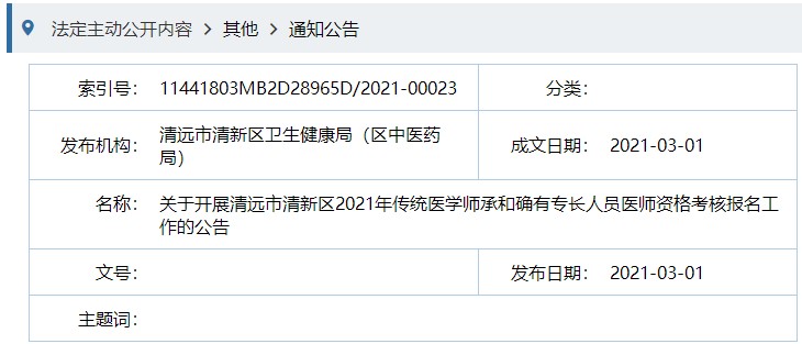 根據(jù)《關(guān)于印發(fā)<廣東省衛(wèi)生健康委員會(huì)廣東省中醫(yī)藥局關(guān)于傳統(tǒng)醫(yī)學(xué)師承和確有專長人員醫(yī)師資格考核考試實(shí)施辦法>的通知》(粵中醫(yī)規(guī)〔2020〕1號)和《關(guān)于開展2021年傳統(tǒng)醫(yī)學(xué)師承和確有專長人員醫(yī)師資格考核考試工作的通知》(粵中醫(yī)辦函〔2021〕3號),現(xiàn)將清遠(yuǎn)市清新區(qū)2021年傳統(tǒng)醫(yī)學(xué)師承和確有專長人員醫(yī)師資格考核報(bào)名工作有關(guān)情況通知如下: