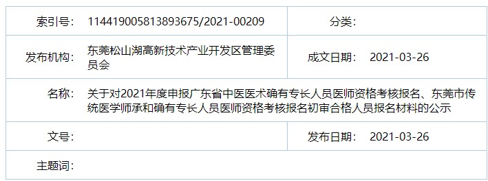 關于對2021年度申報廣東省中醫(yī)醫(yī)術確有專長人員醫(yī)師資格考核報名、東莞市傳統(tǒng)醫(yī)學師承和確有專長人員醫(yī)師資格考核報名初審合格人員報名材料的公示已發(fā)布,醫(yī)學教育網(wǎng)編輯提醒您及時查看,并準備參加考試。