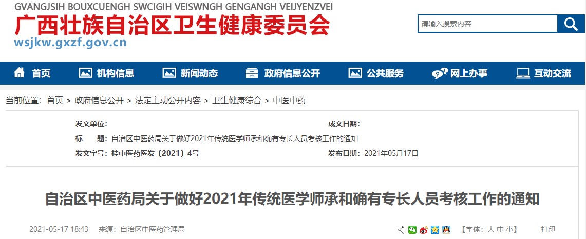 自治區(qū)中醫(yī)藥局關(guān)于做好2021年傳統(tǒng)醫(yī)學(xué)師承和確有專長(zhǎng)人員考核工作的通知