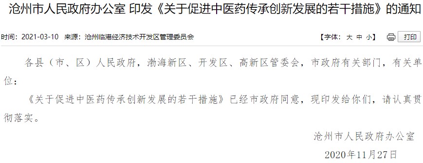 為深入貫徹落實黨中央、國務院《關于促進中醫(yī)藥傳承創(chuàng)新發(fā)展的意見》(中發(fā)〔2019〕43號)和省委、省政府《關于促進中醫(yī)藥傳承創(chuàng)新發(fā)展的若干措施》(冀傳〔2020〕2號)精神,加快推進我市中醫(yī)藥事業(yè)和產(chǎn)業(yè)高質量發(fā)展,結合我市實際,制定如下措施。