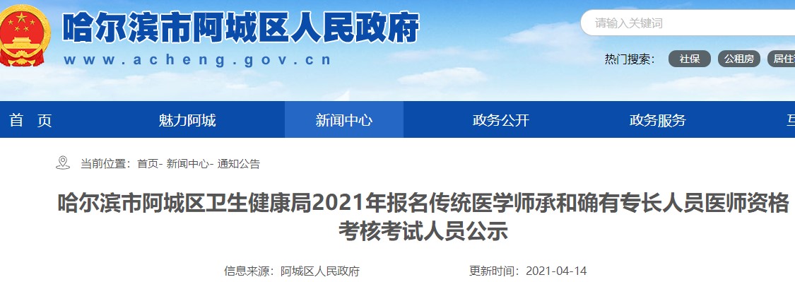 哈爾濱市阿城區(qū)衛(wèi)生健康局2021年報名傳統(tǒng)醫(yī)學(xué)師承和確有專長人員醫(yī)師資格考核考試人員公示已發(fā)布,醫(yī)學(xué)教育網(wǎng)編輯提醒您及時查看,并準(zhǔn)備參加考試。