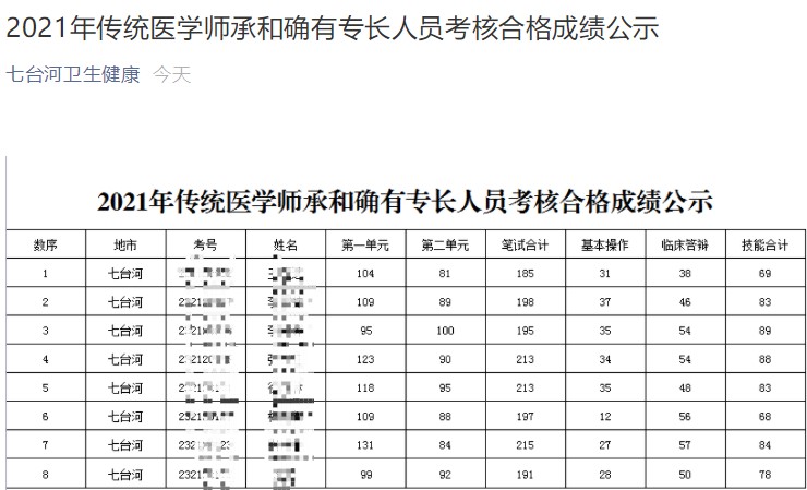 七臺(tái)河2021年傳統(tǒng)醫(yī)學(xué)師承和確有專長(zhǎng)人員考核合格成績(jī)公示已發(fā)布,醫(yī)學(xué)教育網(wǎng)編輯提醒您及時(shí)查看合格名單。