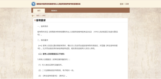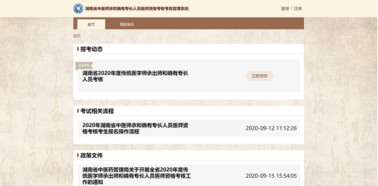 為順利開展湖南省中醫(yī)師承和確有專長(zhǎng)人員醫(yī)師資格考核報(bào)名工作,確??忌M快熟練使用報(bào)名系統(tǒng)報(bào)名,特編寫此報(bào)名操作流程,請(qǐng)考生務(wù)必認(rèn)真閱讀后再進(jìn)行報(bào)名操作。具體如下: