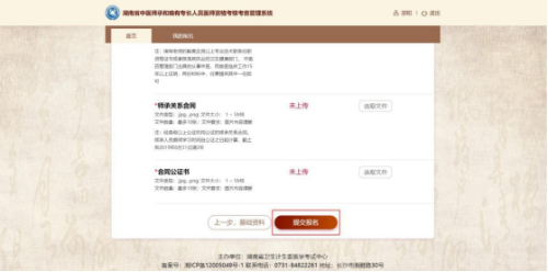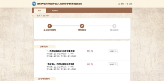 《傳統(tǒng)醫(yī)學(xué)師承出師考核申請(qǐng)表》:文件類型:.jpg,.png;文件大?。?/span>1-5MB;文件數(shù)量:最多 10 張;文件要求:圖片內(nèi)容清晰。