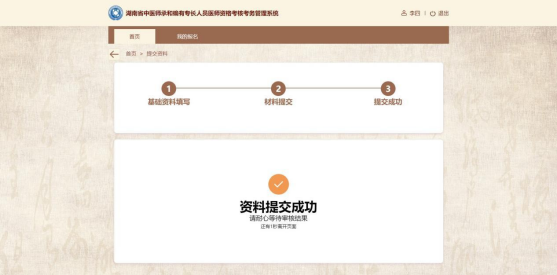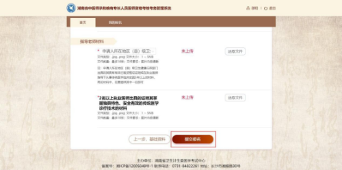 材料上傳后,點(diǎn)擊界面下方的“提交報(bào)名”即可。注意,如需修改基礎(chǔ)資料,直接點(diǎn)擊頁(yè)面底部的“上一步,基礎(chǔ)資料”按鈕即可; 不需修改的話,點(diǎn)擊頁(yè)面底部的“提交報(bào)名”按鈕,顯示提示信息“資料提交成功!請(qǐng)耐心等待審核結(jié)果”后,即報(bào)名操作流程已全部執(zhí)行完畢,完成報(bào)名。如下圖所示: