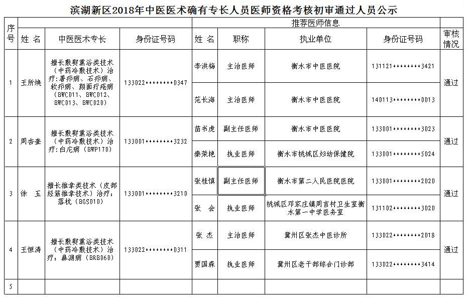 濱湖新區(qū)2018年中醫(yī)醫(yī)術(shù)確有專(zhuān)長(zhǎng)人員醫(yī)師資格考核初審?fù)ㄟ^(guò)人員的公示表如下: