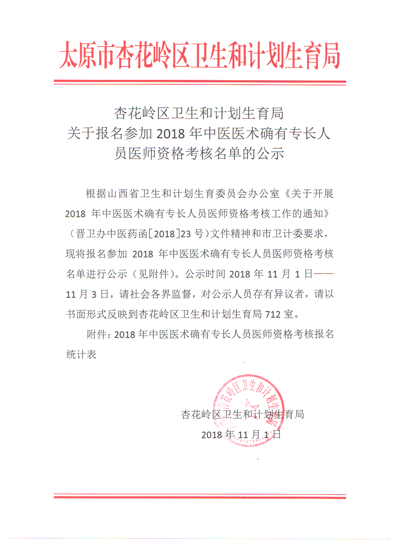 近期杏花嶺區(qū)衛(wèi)生和計劃生育局發(fā)布關(guān)于報名參加2018年中醫(yī)醫(yī)術(shù)確有專長人員醫(yī)師資格考核名單的公示,內(nèi)容如下:
