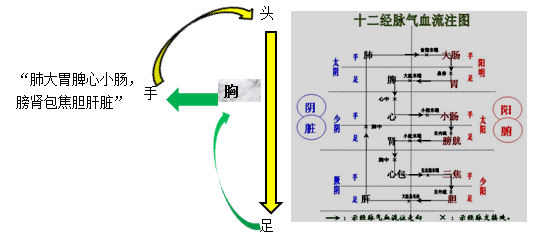 相表里的陰經和陽經在手足末端交接。
