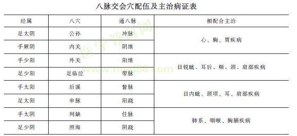 八脈交會(huì)穴是指與奇經(jīng)八脈相通的十二經(jīng)脈在四肢部的八個(gè)腧穴。原稱“交經(jīng)八穴”、“流注八穴”和“八脈八穴”。