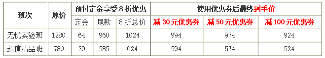 (1)預(yù)付定金=課程原價×5%;