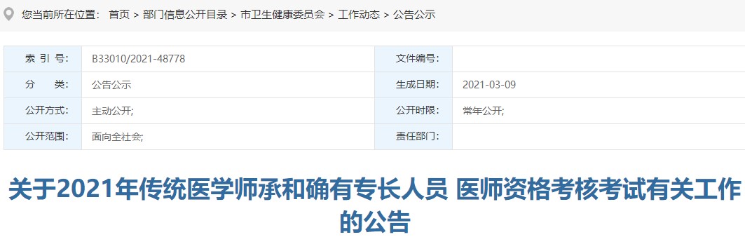 關(guān)于2021年傳統(tǒng)醫(yī)學(xué)師承和確有專長(zhǎng)人員 醫(yī)師資格考核考試有關(guān)工作的公告已發(fā)布,瑞金市2021年傳統(tǒng)師承/確有專長(zhǎng)報(bào)名3月10日-4月10日!