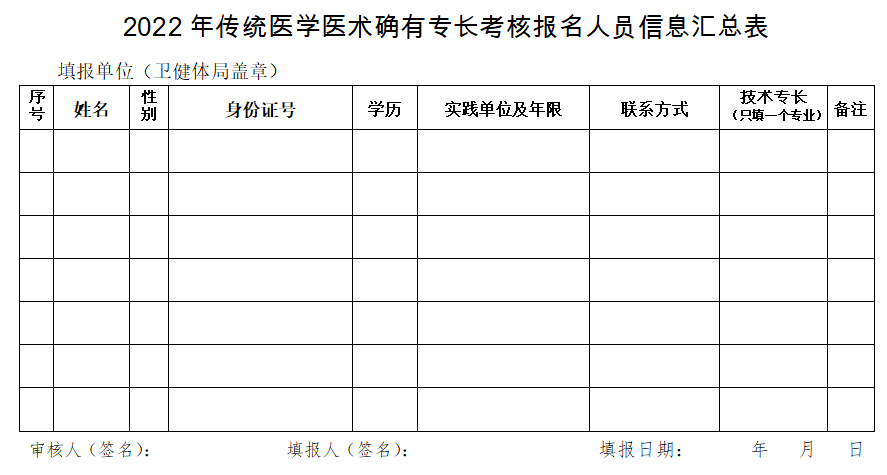 2022年傳統(tǒng)醫(yī)學醫(yī)術確有專長考核報名人員信息匯總表