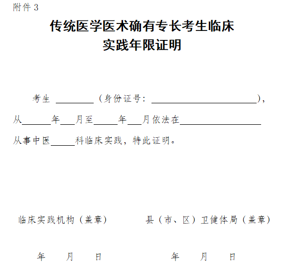 附件下載:傳統(tǒng)醫(yī)學(xué)醫(yī)術(shù)確有專長考生臨床實(shí)踐年限證明.docx