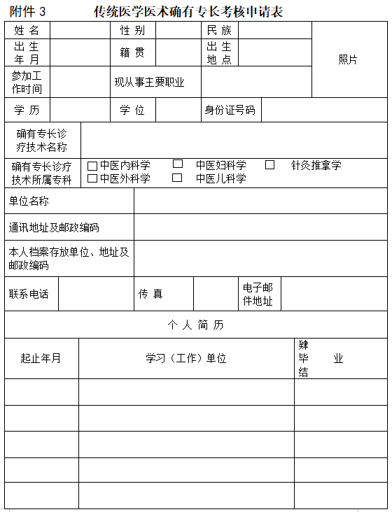 附件下載:傳統(tǒng)醫(yī)學(xué)醫(yī)術(shù)確有專長考核申請表.docx