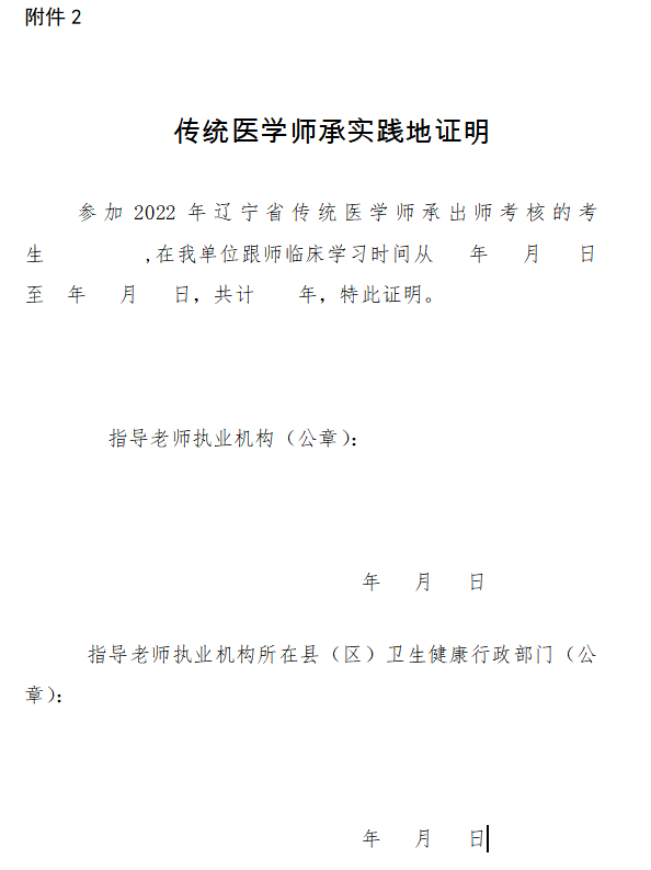 關(guān)于“遼寧省2022年傳統(tǒng)師承考核報名材料模板-傳統(tǒng)醫(yī)學(xué)師承實踐地證明”相關(guān)內(nèi)容,相信參加2022年傳統(tǒng)醫(yī)學(xué)師承和確有專長人員醫(yī)師資格考核的考生都想知道,為幫助大家了解,在此醫(yī)學(xué)教育網(wǎng)小編為大家整理如下內(nèi)容: