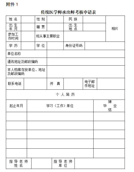 附件下載:傳統(tǒng)醫(yī)學(xué)師承出師考核申請表.docx
