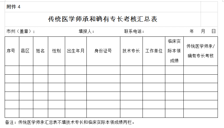 附件下載:傳統(tǒng)醫(yī)學(xué)師承和確有專長考核匯總表