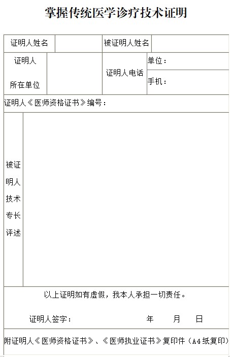 四川省各區(qū)縣掌握傳統(tǒng)醫(yī)學(xué)診療技術(shù)證明大家都在關(guān)注,考生在報名審核期間需要填寫關(guān)于傳統(tǒng)醫(yī)學(xué)師承和確有專長人員醫(yī)師資格考核重要提示,下面是樣板文件供大家參考。
