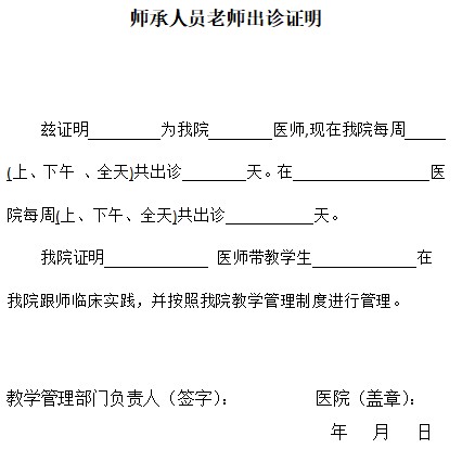 北京師承人員老師出診證明