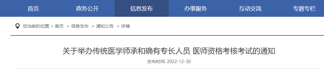 根據(jù)《傳統(tǒng)醫(yī)學師承和確有專長人員醫(yī)師資格考核考試辦法》(中華人民共和國衛(wèi)生部令第52號)工作要求,我省2022年傳統(tǒng)醫(yī)學師承和確有專長人員醫(yī)師資格考核考試暫定于2023年1月7-8日舉行,具體事宜如下: