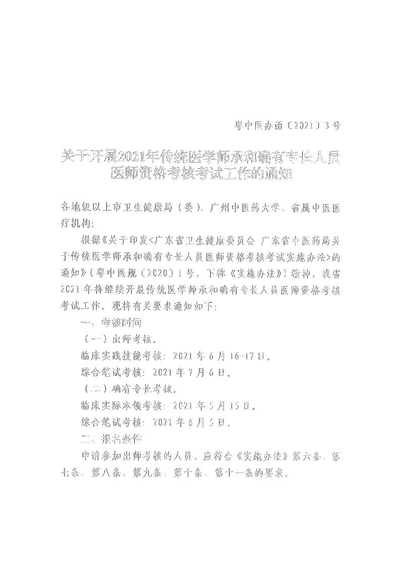 廣東省2021年傳統(tǒng)醫(yī)學師承和確有專長人員醫(yī)師資格考核考試通知