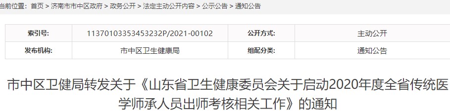 濟南市市中區(qū)2020年傳統(tǒng)醫(yī)學師承人員出師考核報名及考試通知已發(fā)布,醫(yī)學教育網(wǎng)編輯為您整理如下。