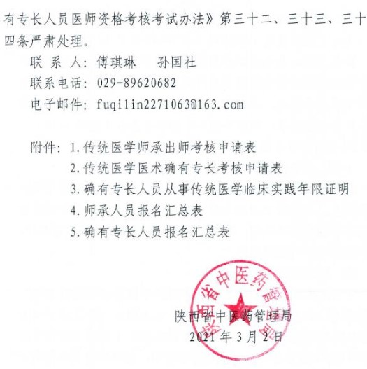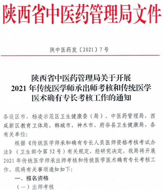 陜西省中醫(yī)藥管理局關(guān)于開展2021年傳統(tǒng)醫(yī)學(xué)出師考核和確有專長考核報名工作的通知